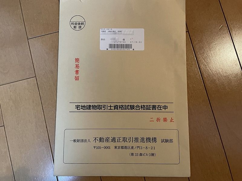 後日 ちゃんと【合格証書】が届きました