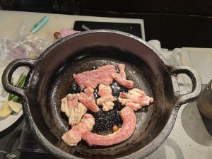 こんな鉄鍋で焼いてくれるんです