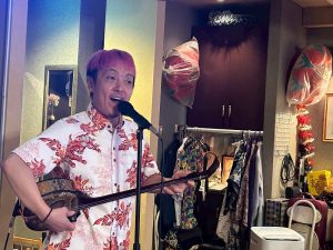 三線で弾き語りを聴かせてくれました