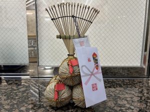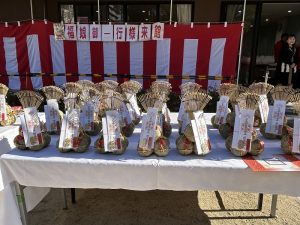 福娘さんが 新年のあいさつをして上方締めをして 俵を頂いて 最後に記念撮影 をして終わり