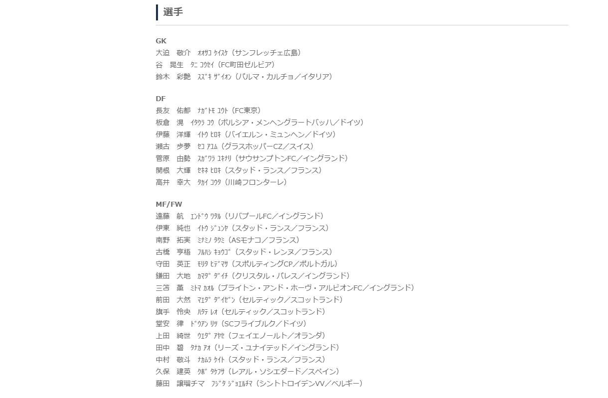 ですので、同じポジションでもあるイングランドプレミアリーグ・アーセナル所属の冨安健洋選手に特に期待しておりましたが、怪我で選出されなかったので残念です。