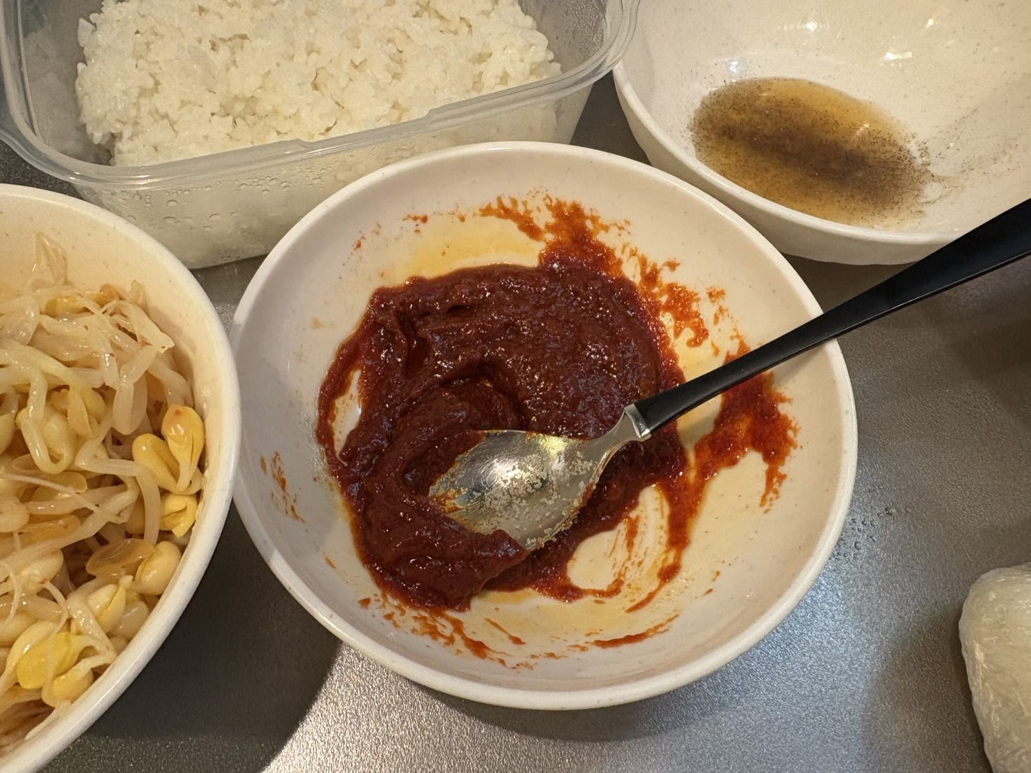 味噌・コチュジャン・ごま油・砂糖・ニンニクを混ぜてできたタレがこちら。