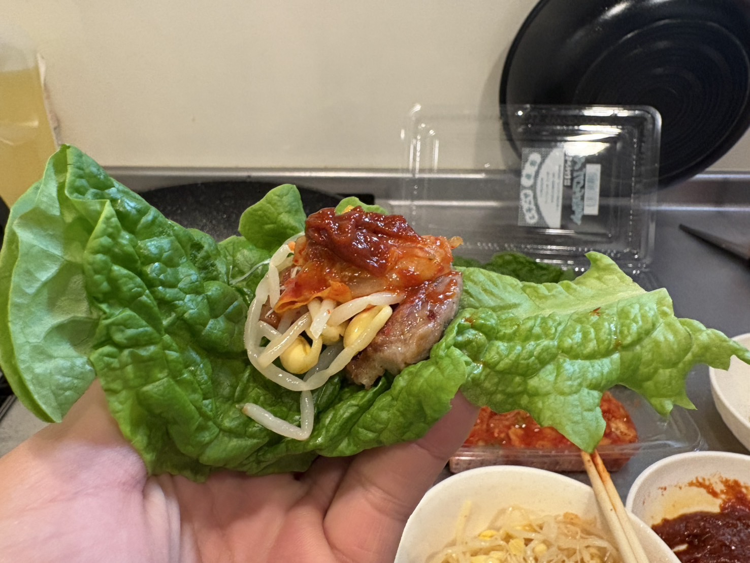 その名の通り、豚肉を焼いたサムギョプサルや肉をゆでたポッサムなど、肉を野菜で包んで食べる料理に使うのが定番のようです。