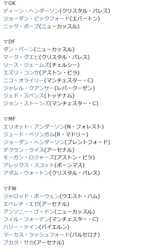 最後にイングランド代表。
