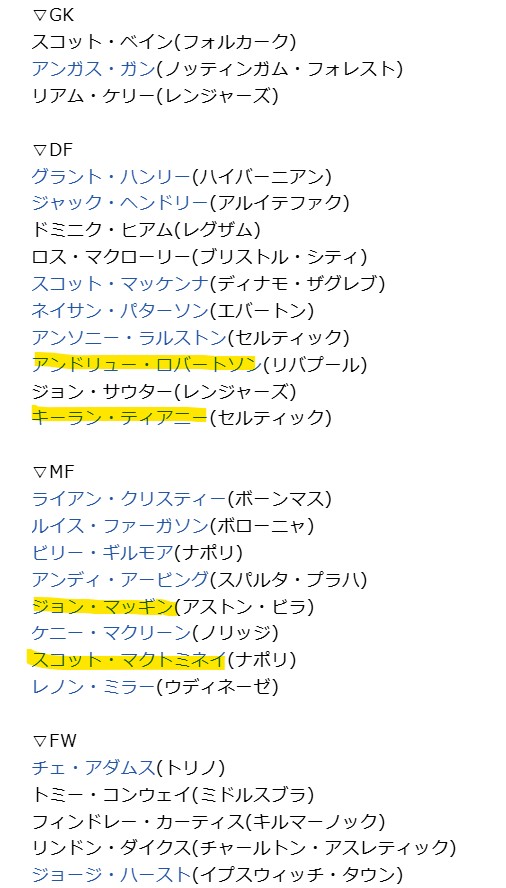 スコットランドも招集メンバーが発表されました。