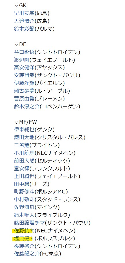 日本代表の招集メンバーも発表されました。