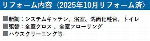 10階建て6階部分、57.67平米、東向きバルコニー、1LDKのお部屋です。 東向きのバルコニーの目前には堀江公園があるため目の前を遮るものはなく、のどかな景色が広がっており、6階と高層階ではないですが眺望、陽当り良好です。 東向きのため朝日が気持ちよく差し込むお部屋です。 間取りは1LDKですので単身の方におすすめです。 令和7年10月にフルリフォーム完成しており、システムキッチン、浴室、洗面化粧台、トイレの水回りの設備の新調や全室のクロス、フローリングの張替えを行っております。 57.67平米の広さでリビングは約16.2帖、洋室は約8.1帖とゆったりできて落ち着ける広さです。 大阪メトロ四つ橋線『四ツ橋駅』徒歩4分と近く、南堀江の中でも公園が近くの静かで暮らしやすい環境ではないでしょうか。 現況空家ですので即日内覧可能です。 南堀江でリフォーム済みの1LDKのお部屋をお探しの方は是非お問い合わせください。 by大川] 【*内覧*】室内をパノラマで!バーチャル内覧はこちら→ ![]() 【*必見*】 外観・周辺・立地の紹介・概要はこちらから→ ![]() |