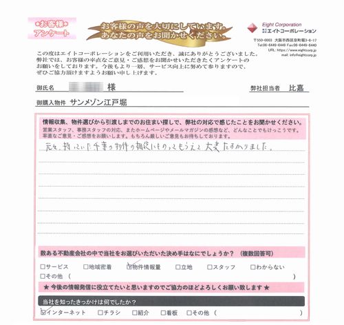 249|frank43 様 フドウ京町堀ハイツ 担当:神門